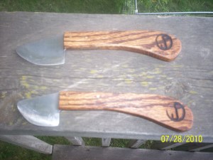 Pair of utility kitchen knives Posted byjasonpromJuly 28, 2010Posted inKnives Oak handles w/ red mahogany stain Finished a pair of utility knives for around the kitchen and such. We’ll see how these work. Related