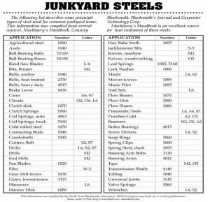 I found this on the internet and it gives some insight into what steel you may find when working with random products you would find at the junkyard.