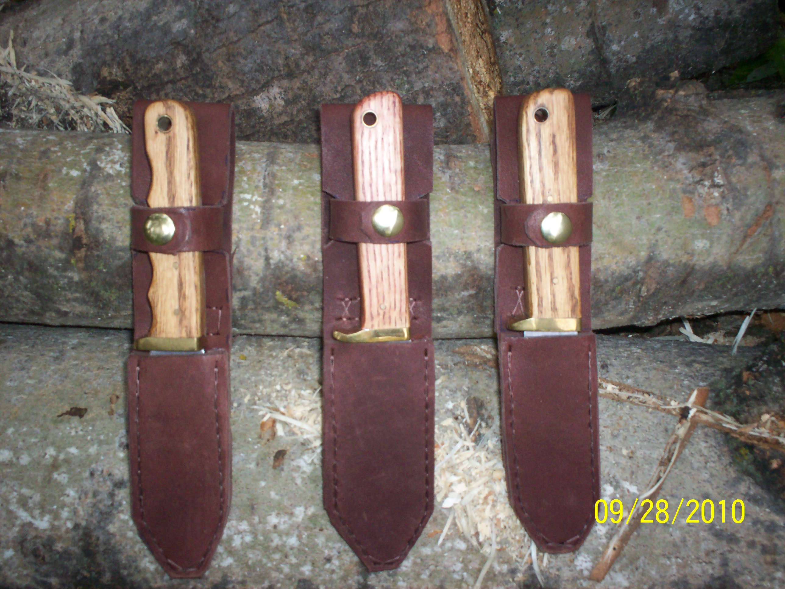 I like this steel, the brass is easy to work with and looks great. The handles are made from oak and the leather is very sturdy. Two of these are already spoken for, but I think I’ll be making more like these for sale at $75 ea.