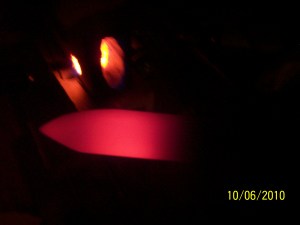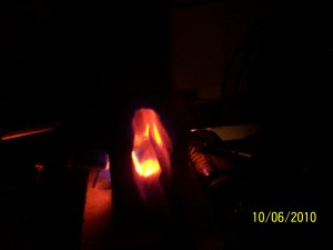 Into the forge it goes Posted byjasonpromOctober 6, 2010Posted inKnife Making Here is a knife blade in the forge being heated up. This blade is almost to 1500 degrees. In just a minute it will be ready to be quenched into oil. Related