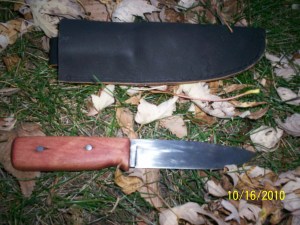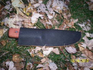 Here is the first knife I made once getting back into knife making this spring. I am trying a different sheath style for this one. I am liking it a lot. It is custom fit exactly to the knife so it acts like a pouch for the knife. It holds it very well and is very functional.