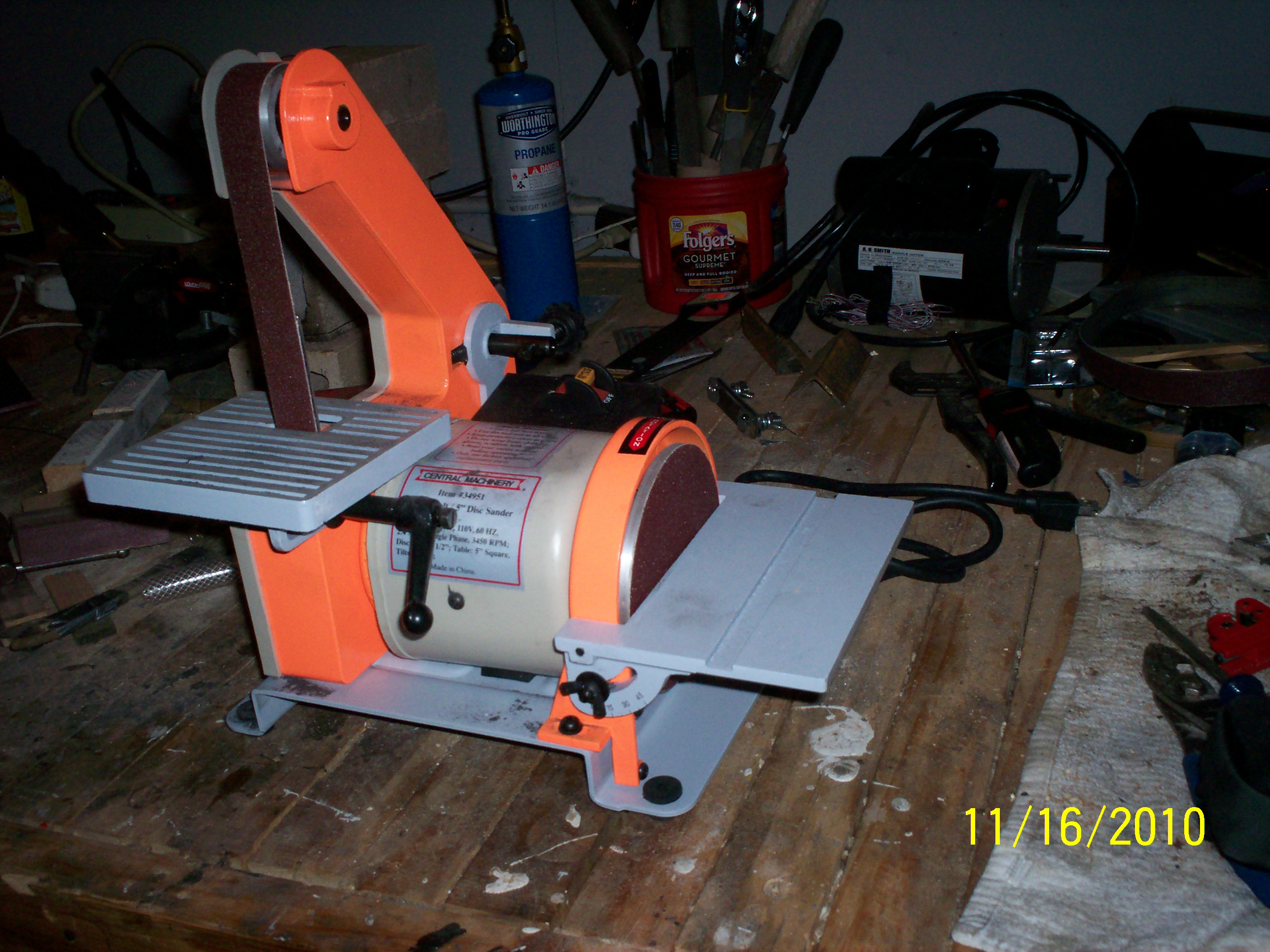 New grinder Posted byjasonpromNovember 17, 2010Posted inKnife Making Great news! I recently acquired this wonderful grinder from Harbor Freight. This bad boy will speed things up a ton. I still like and will use my files, but this allows me to take a bunch of the scratches out without so much elbow grease. Related