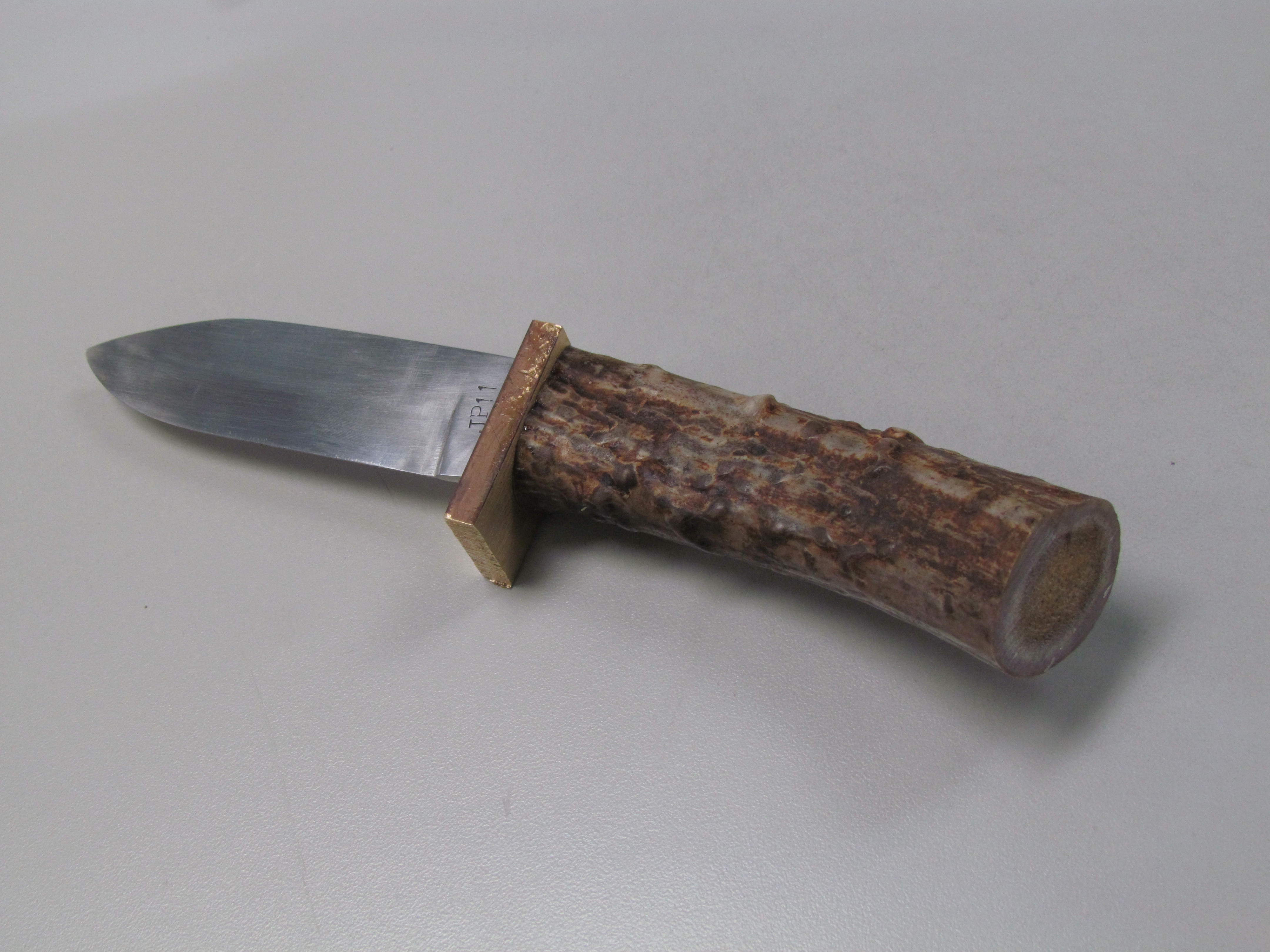 Antler handled knife Posted byjasonpromFebruary 28, 2011Posted inKnife Making Here is one of the antler handled knives that I have been working on. Since I don't think I will be able to polish the end nicely due to the soft middle it will feature a brass butt cap when done. Related