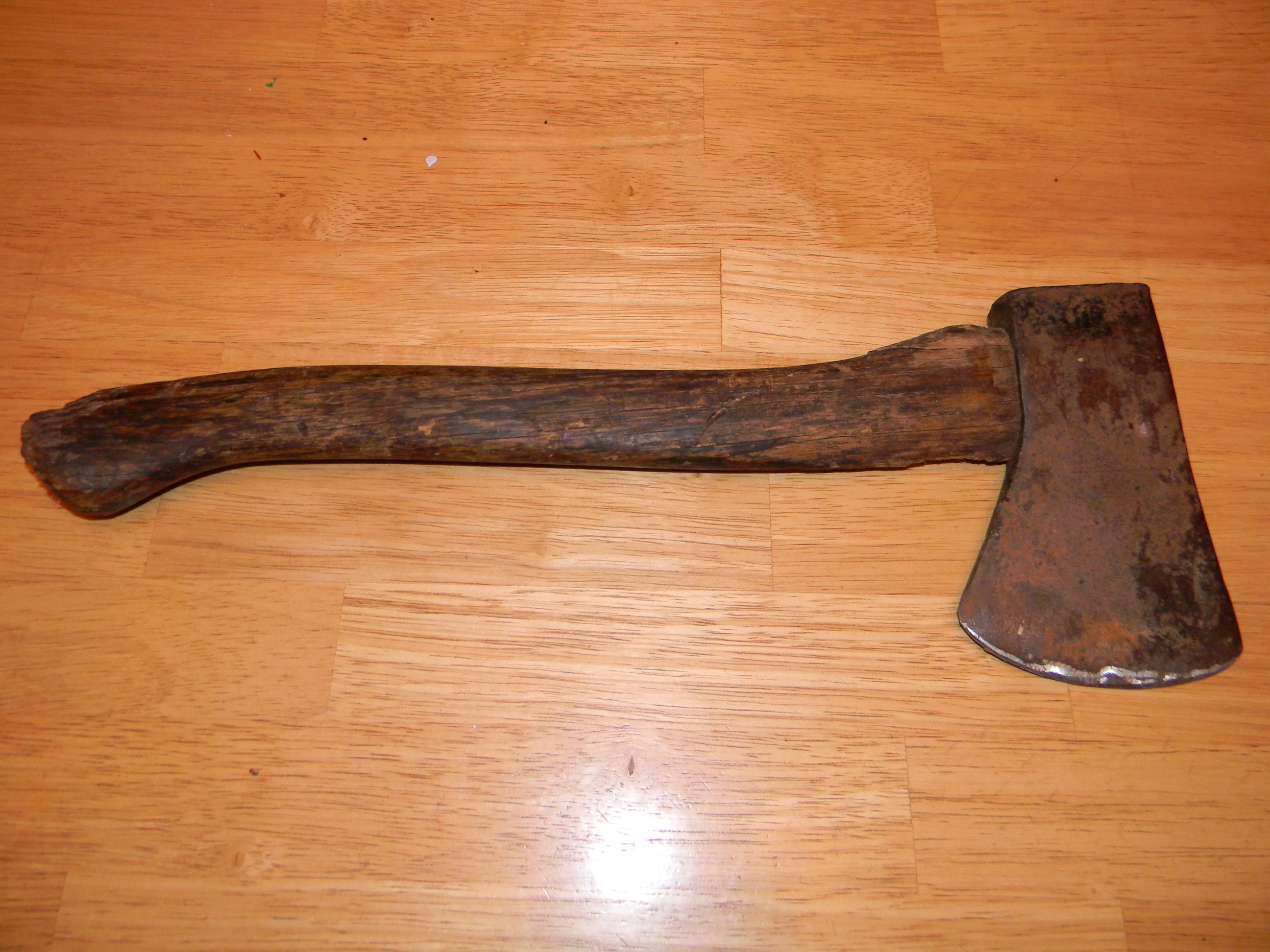 I bought this Plumb brand hatchet at a flea market a couple years ago. I've always wanted to carve a new handle for it and fix it up. I finally ordered a new handle and will get started on revitalizing the head. I need to soak it in vinegar and the rust will wipe off. I will then sand it, polish it, sharpen it and put the new handle on it.