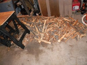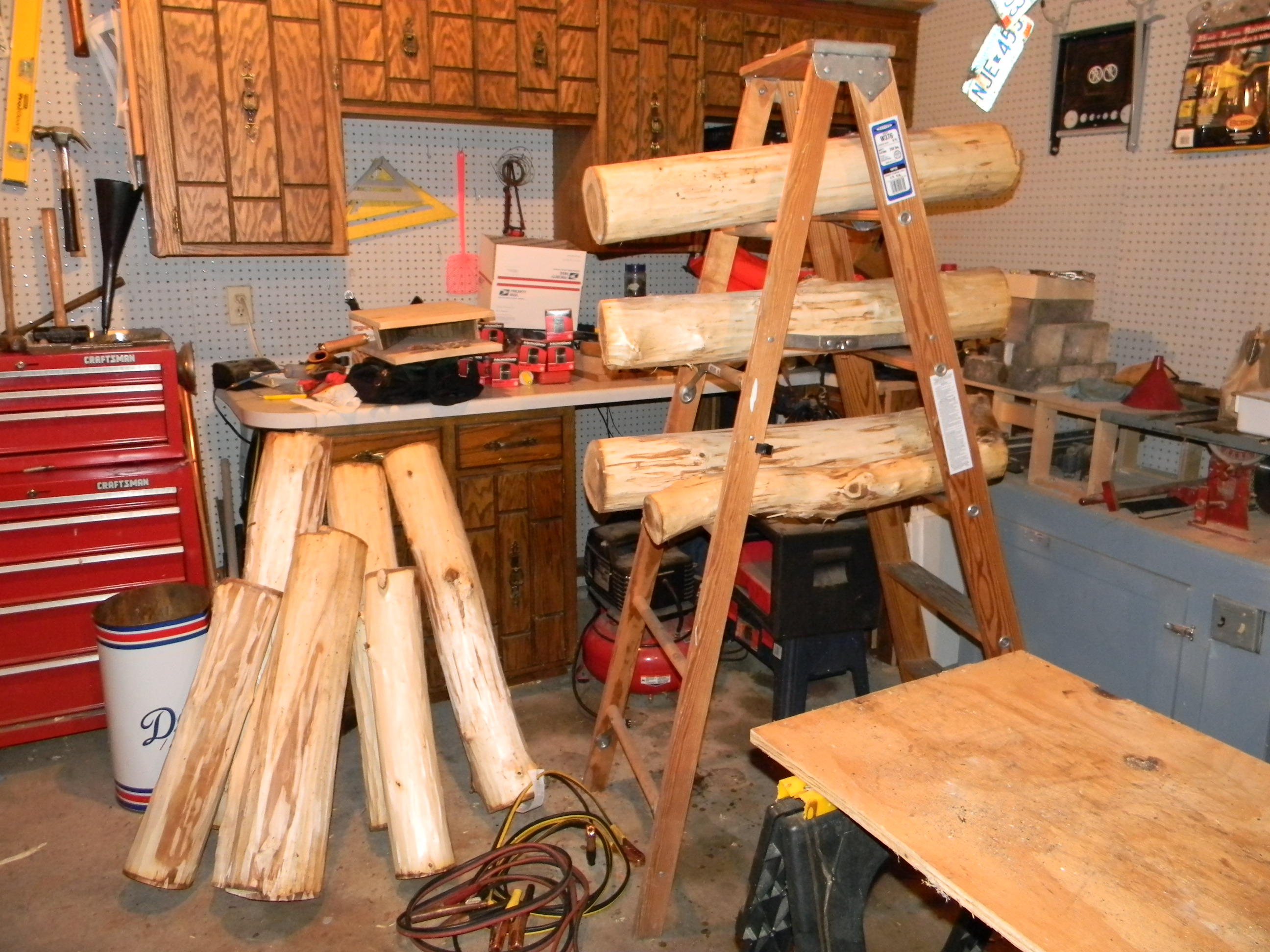 I always thought log furniture seemed expensive. So, I set off to build some for the cabin. Now I know why it costs as much as it does. You don’t just go buy some two by material from Home Depot. I had to harvest the logs, get them home and peel them. Here is one pile of bark shavings. I don’t know how many hours I have into this so far and I don’t really want to know. Mind you, I’ve done all of this work just to get these to the drying stage…. I haven’t even built any furniture yet!